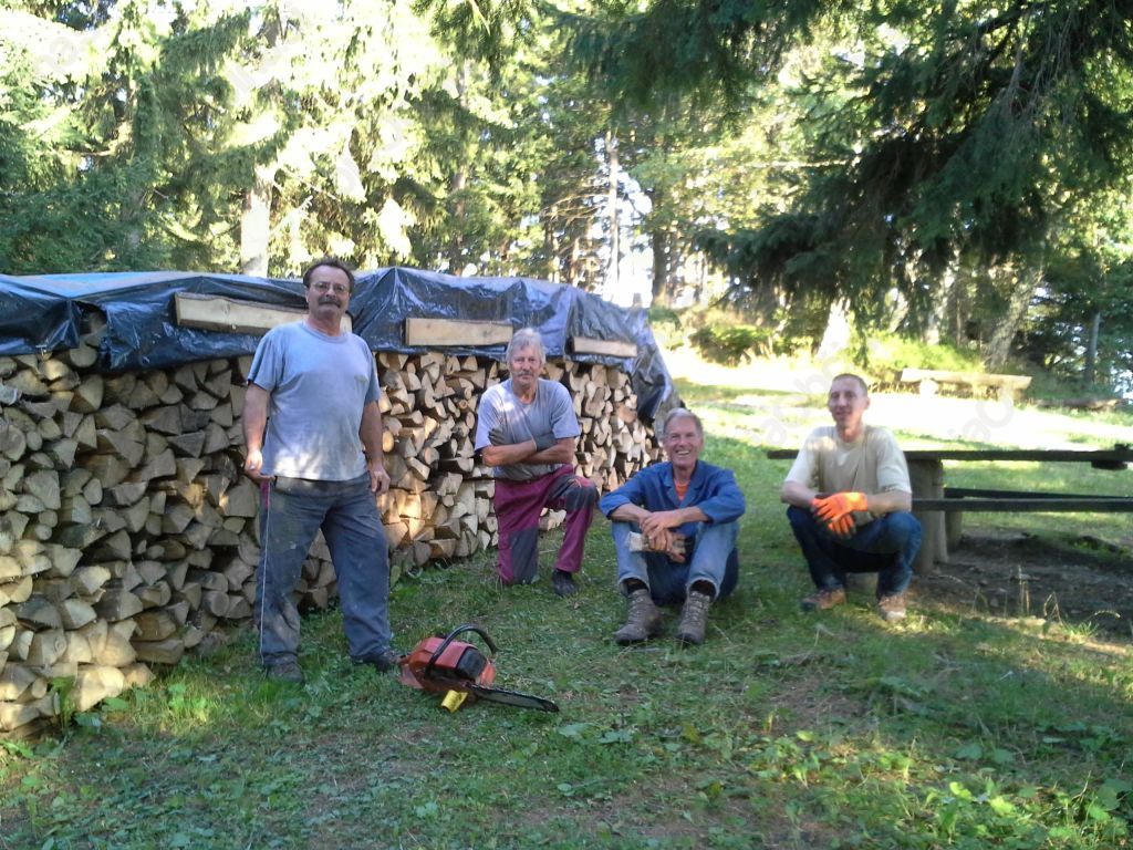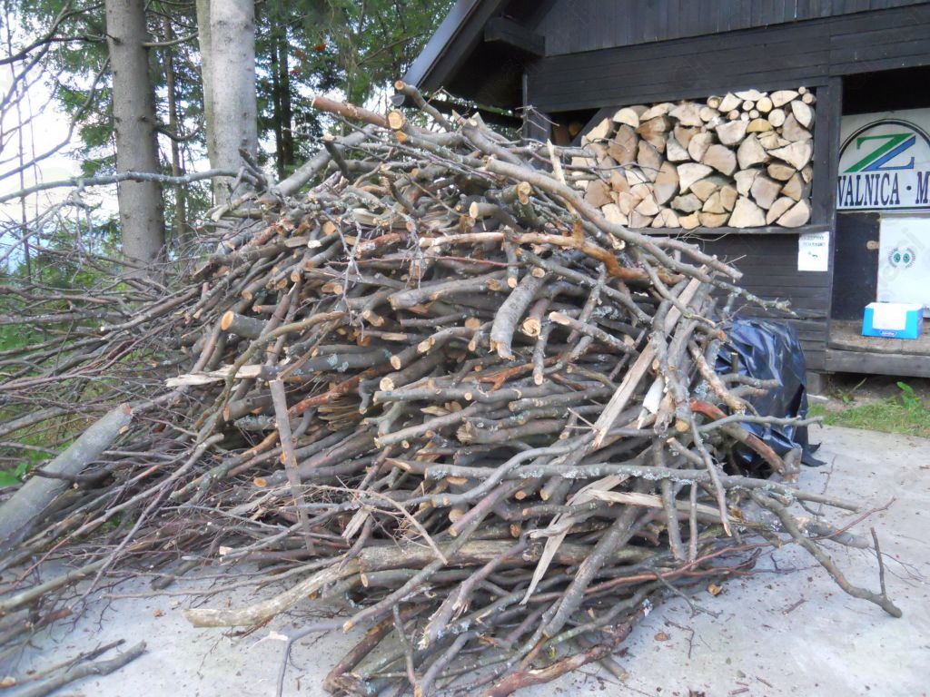 Že spomladi po čiščenju gozda in okolice za posledicami žledi pri naši koči »Kremžarici« smo se vodstvo društva, vodniki in markacisti dogovorili, da bomo poleti pomagali pri pripravi, spravilu in zlaganju drv.