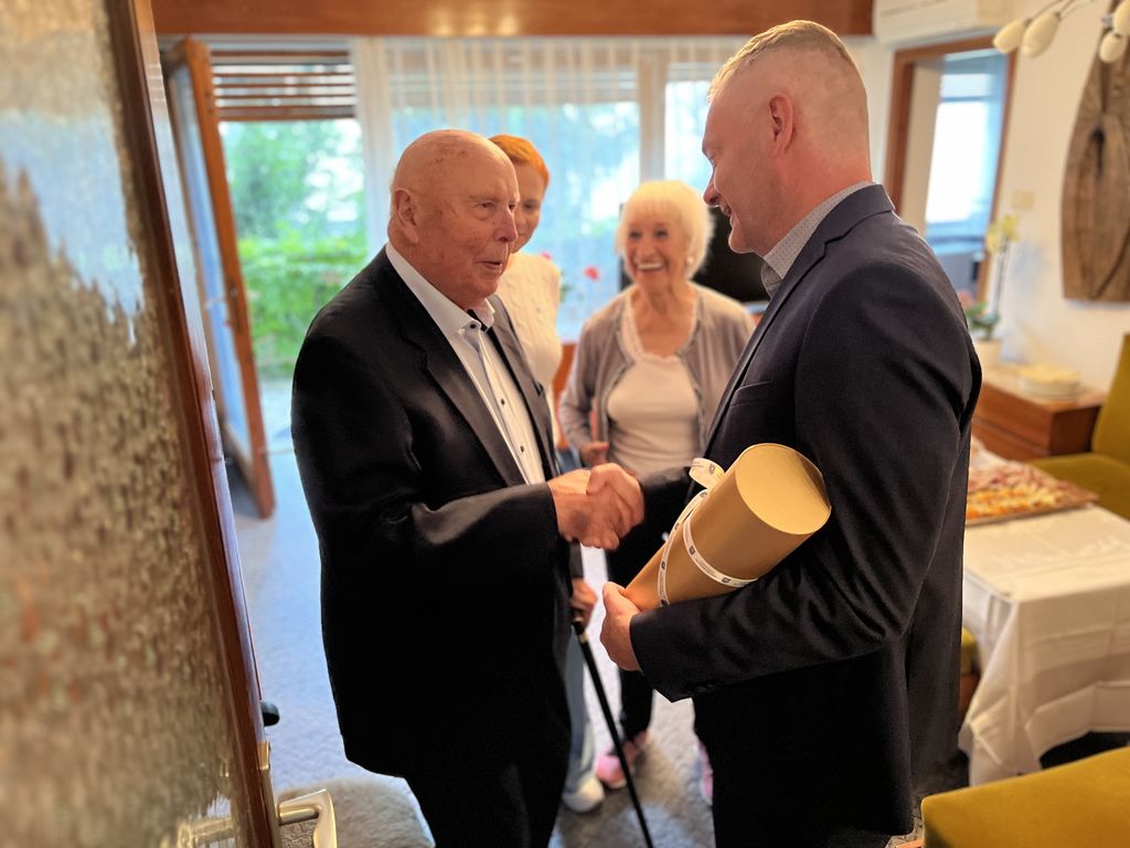 Ob jubileju ga je obiskal župan Mestne občine Slovenj Gradec Tilen Klugler in podžupan dr. Peter Pungartnik.