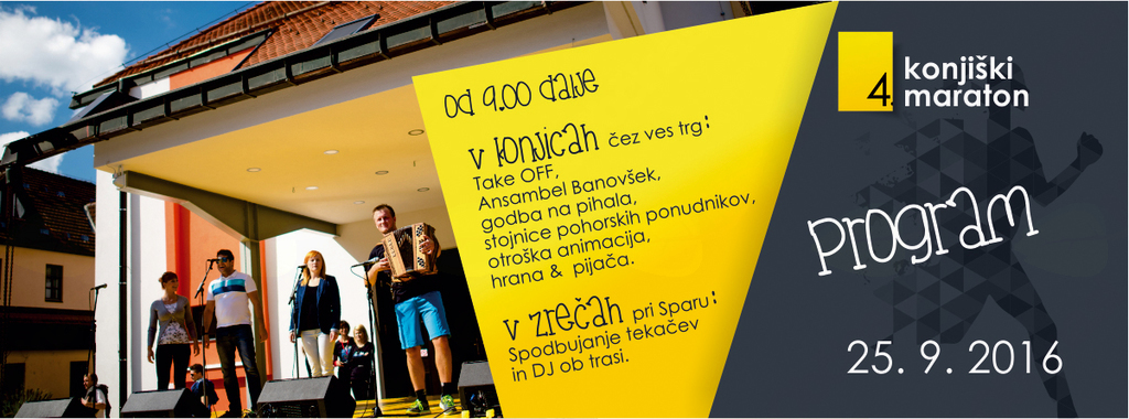 V Slovenskih Konjicah bo v nedeljo vršalo od dogajanja. Ritem bitju srca bo iz zvočnikov glavnega odra narekovala glasbena skupina Take off, v prireditvenem šotoru pa se jim bo pridružil še ansambel Banovšek. Da ne bo dolgčas niti ob progi bodo poskrbeli člani Godbe na pihala Slov. Konjice, in muzikantje s harmonikami, na prelomnici 5-ih kilometrov pa bo za dobro razpoloženje poskrbel DJ.
