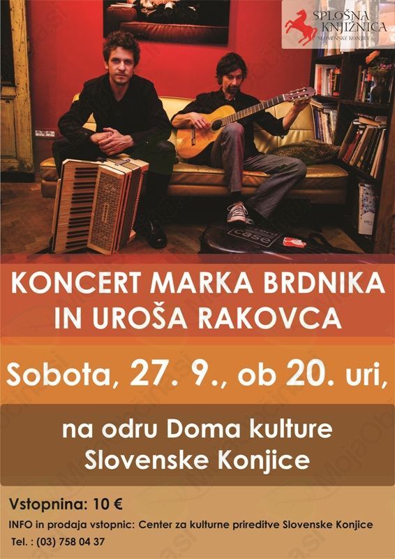 Uroš Rakovec (kitara) in Marko Brdnik (akordeon) sta priznana in izkušena glasbenika, ki ju poznamo iz različnih zasedb. Z njima se vam na odru Doma kulture Slovenske Konjice obeta pravo doživetje za glasbene sladokusce.