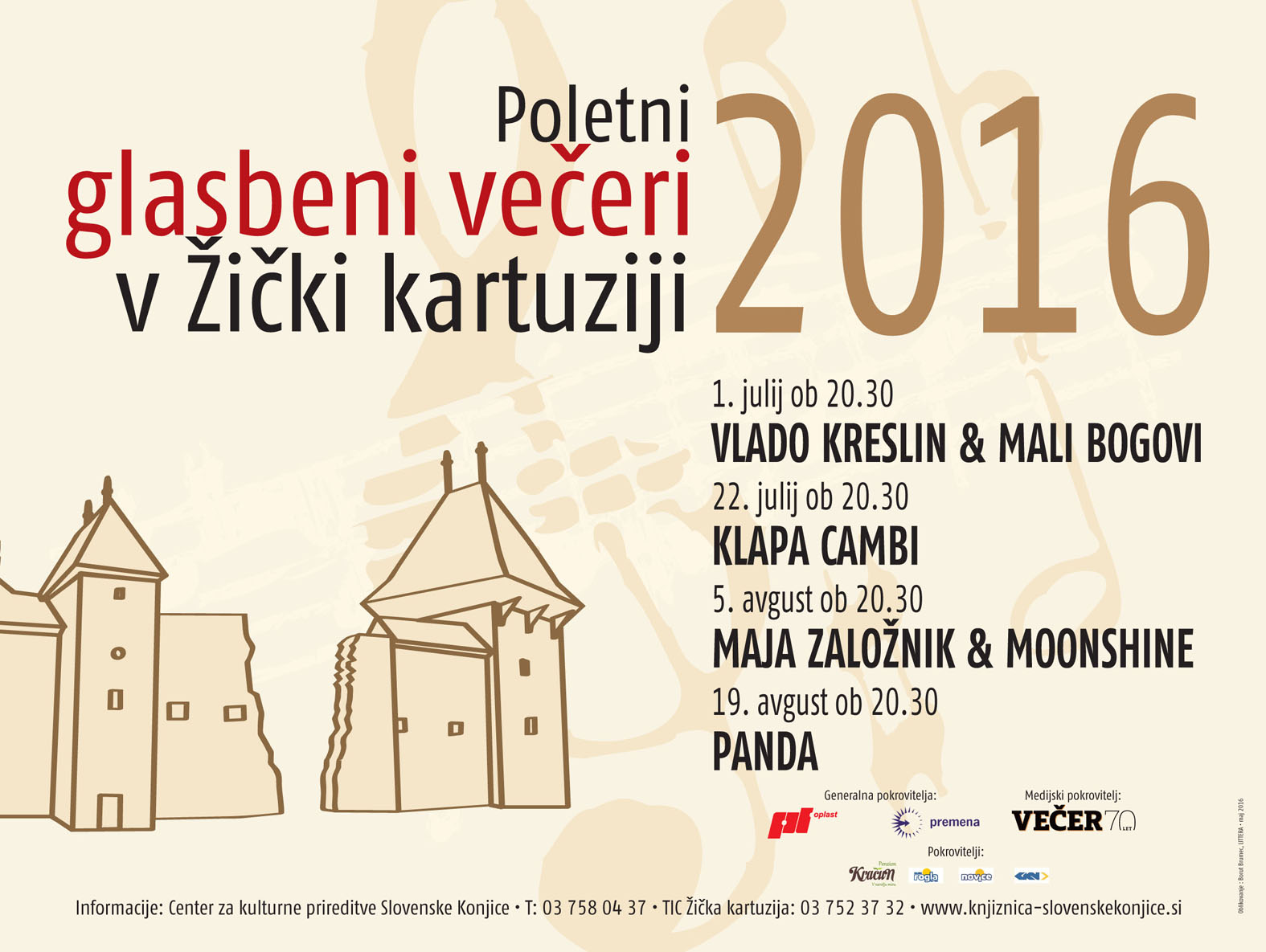 Informacije: Center za kulturne prireditve Slovenske Konjice: 03/ 758 04 37, TIC Žička kartuzija: 03/ 752 37 32.