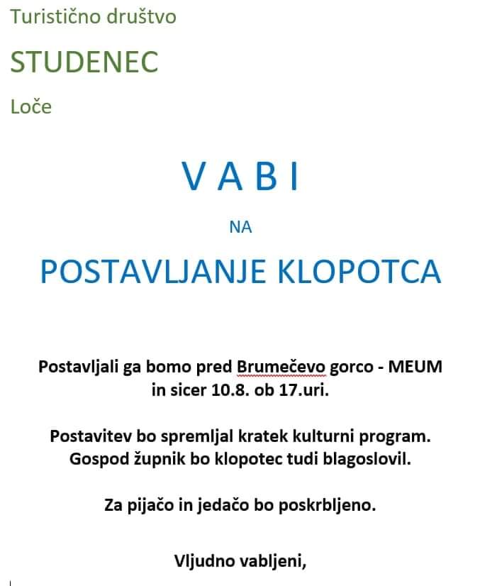 Organizator: TURISTIČNO DRUŠTVO STUDENEC LOČE