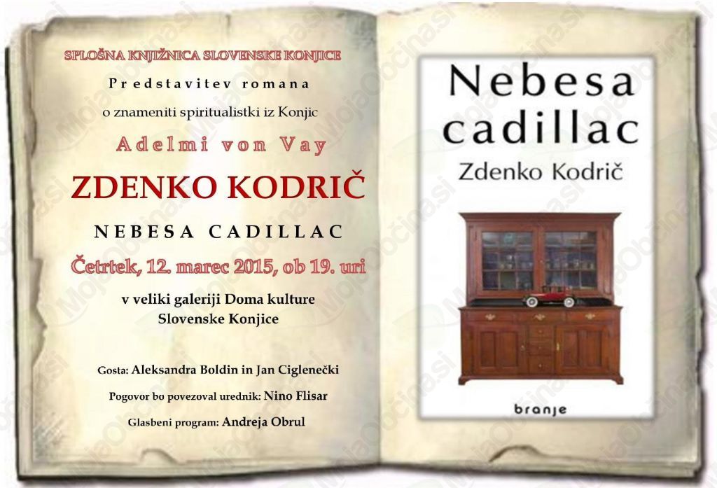 Predstavitev romana o znameniti spiritualistki iz Konjic Adelmi von Vay. Gosta: Aleksandra Boldin in Jan Ciglenečki. Pogovor bo povezoval urednik Nino Flisar. Glasbeni program: Andreja Obrul.