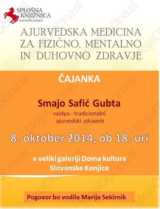 Smajo Safić Gubta, vaidya - tradicionalni ajurvedski zdravnik, je prvi v Sloveniji napisal svoji obsežni knjigi ajurvedske medicine z naslovi: Ajurvedska medicina za fizično, metalno in duhovno zdravje ter Adivasi energija za srečno življenje. Svoje metode bo predstavil na Čajanki v Splošni knjižnici Slovenske Konjice.