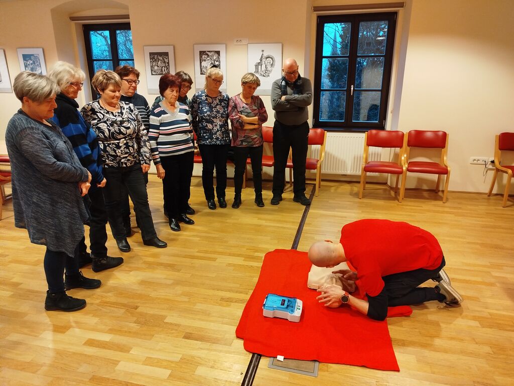 Delavnico je vodil predavatelj prve pomoči Območnega združenja Rdečega križa Slovenske Konjice, Jože Rečnik. Nazorno je prikazal postopke, kako hitro prepoznamo znake srčnega zastoja, da varno pristopimo in pokličemo pomoč na 112. Udeleženci so pridobljeno znanje lahko tudi sami preizkusili.