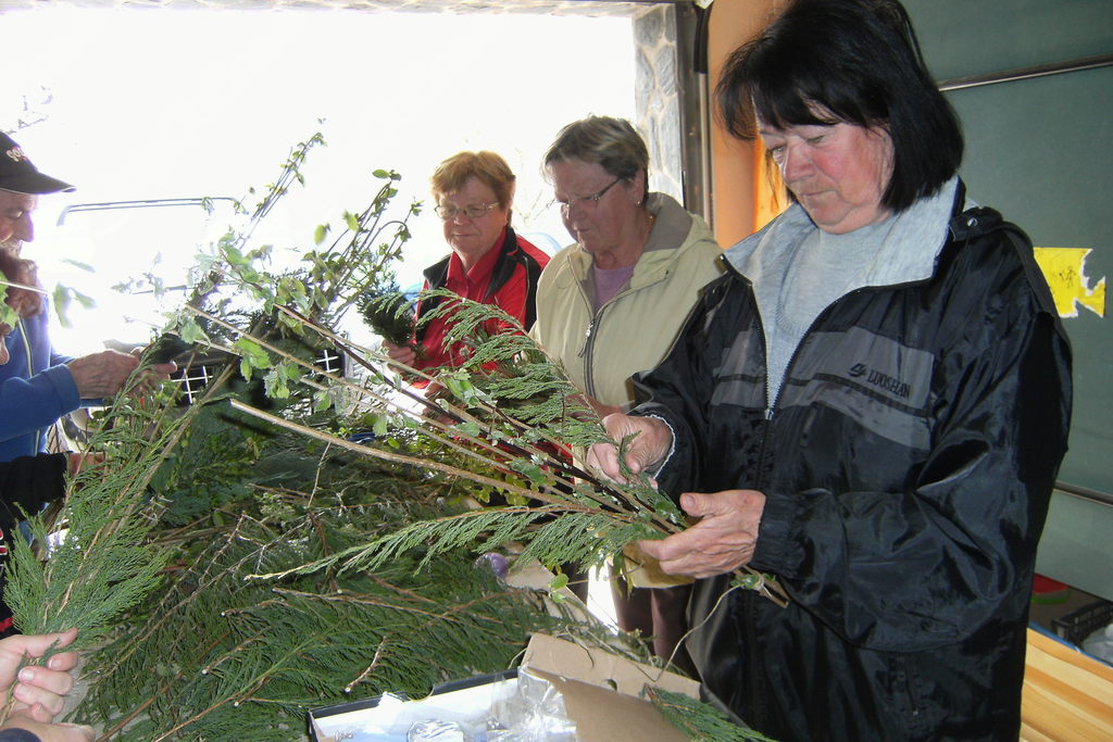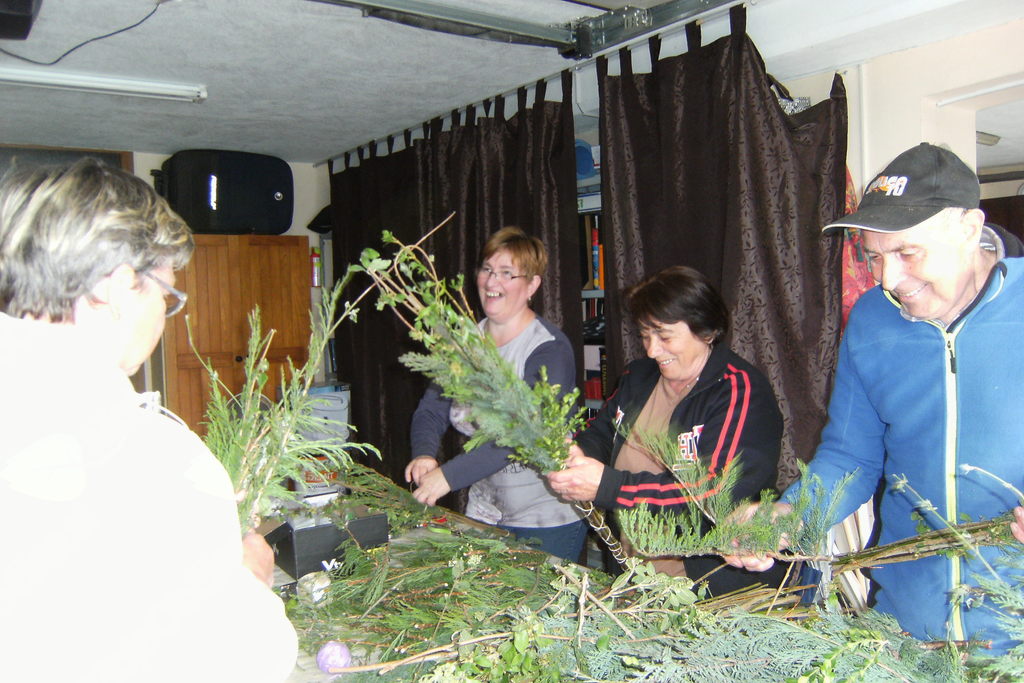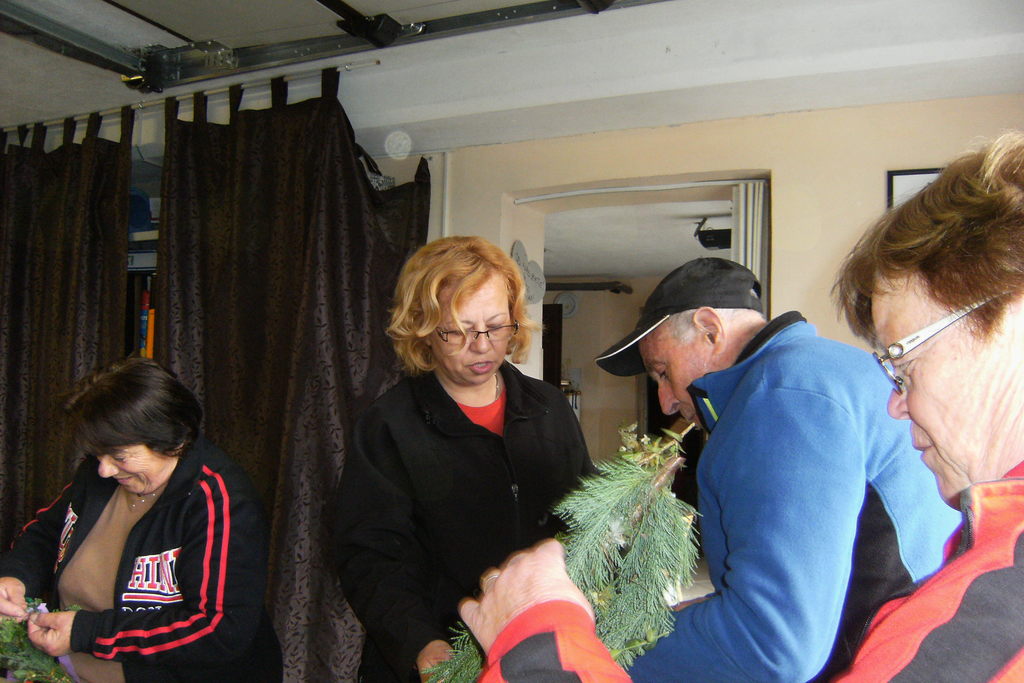 V četrtek, pred cvetno nedeljo, se je zbralo nekaj članov Območnega društva invalidov Dravinjske doline, v Žičah pri go. Silvi Pivec, in začelo izdelovati butarice.