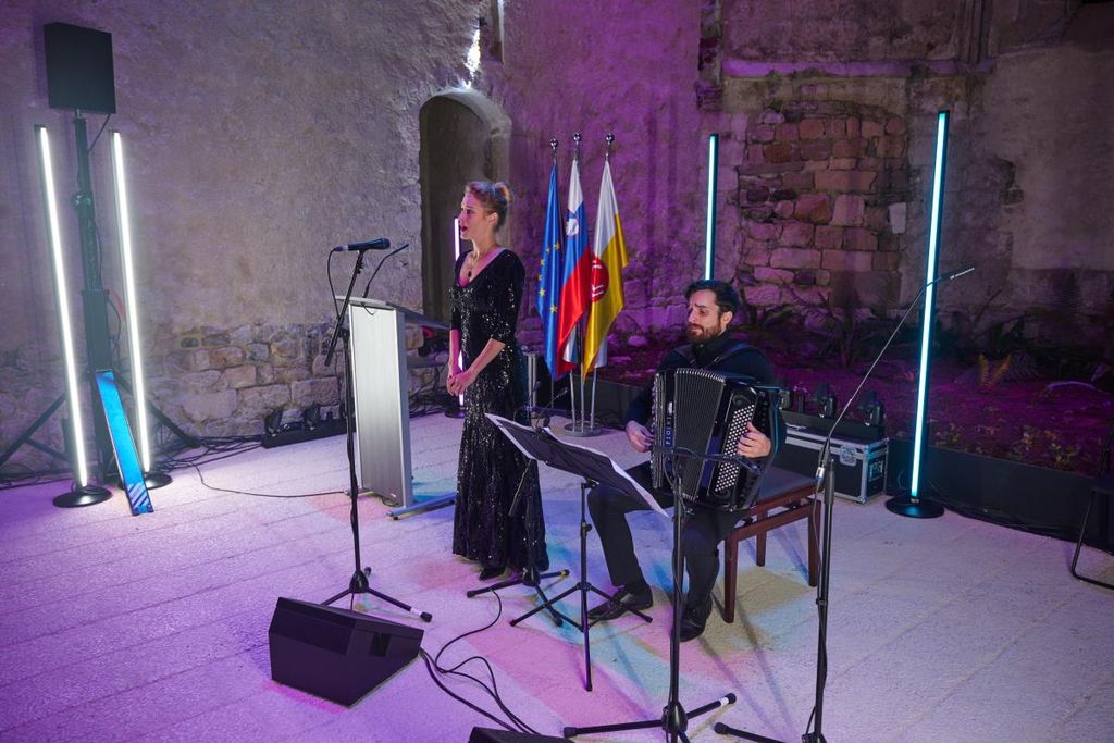 Program sta obogatila glasbena gosta, vrhunska sopranistka Nika Gorič in Matjaž Balažic na akordeonu. Zahvalili smo se tudi Botaničnemu vrtu za donacijo zasaditve Žičkega grobeljnika. Po svečanem odprtju so bili obiskovalci povabljeni še na ogled začasnega razstavišča lapidarija. Na zunanjem zidu cerkve so se vrteli filmi Maje Bahar in Matije Plevnika, pa tudi glasba, ki jo je posebej za odpiranje strehe in predstavitev cerkve sv. Janeza Krstnika napisal skladatelj Aldo Kumer. Za gib ob glasbi je poskrbela Vanja Kolanovič.