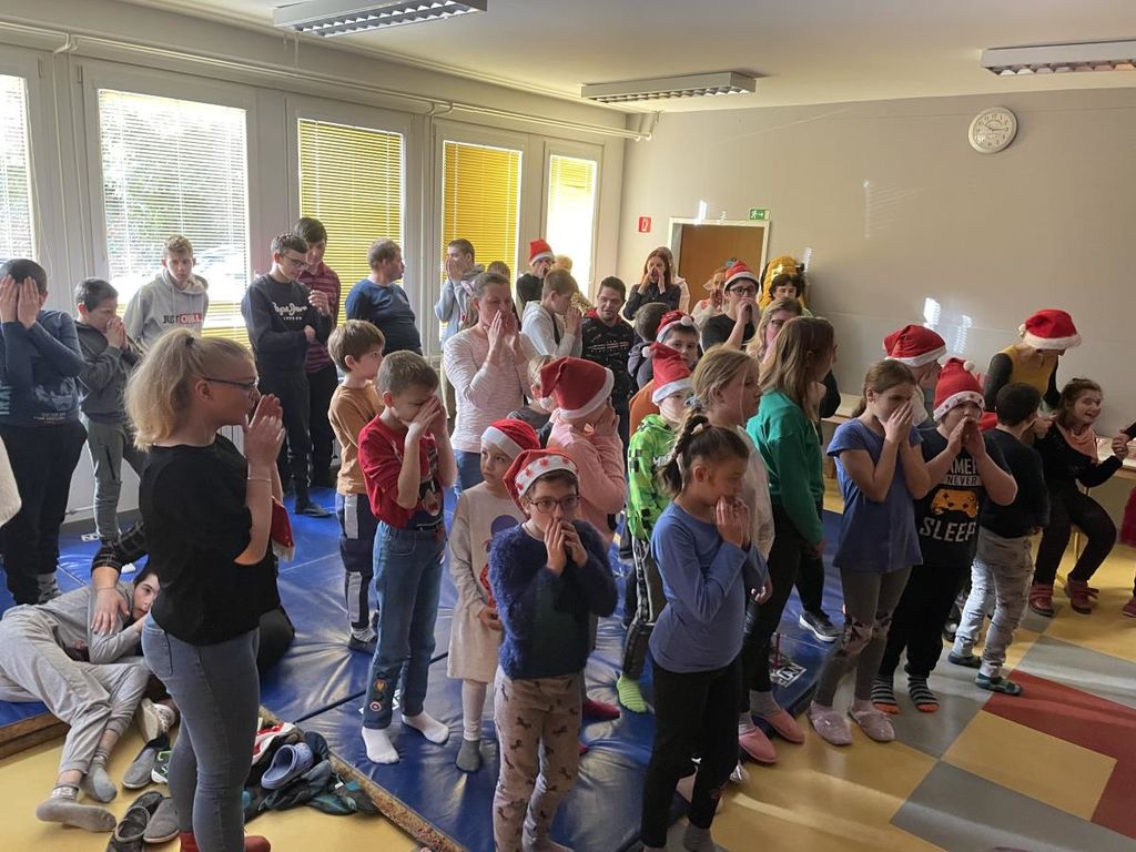 Prav tako je obiskal otroke podružnične osnovne šole V parku. Polepšali so mu dan s prazničnim programov, ter ga pogostili z dobrotami iz njihove kuhinje.