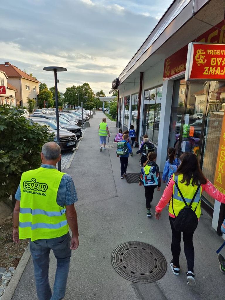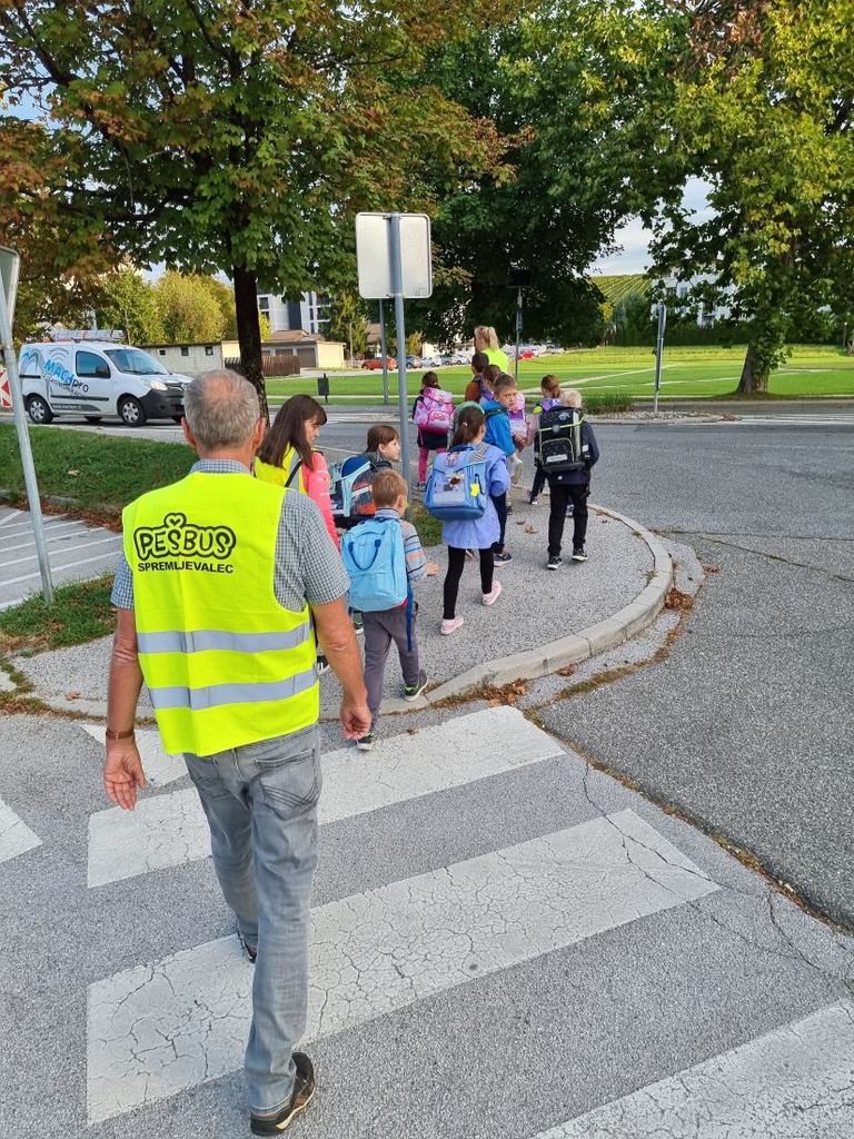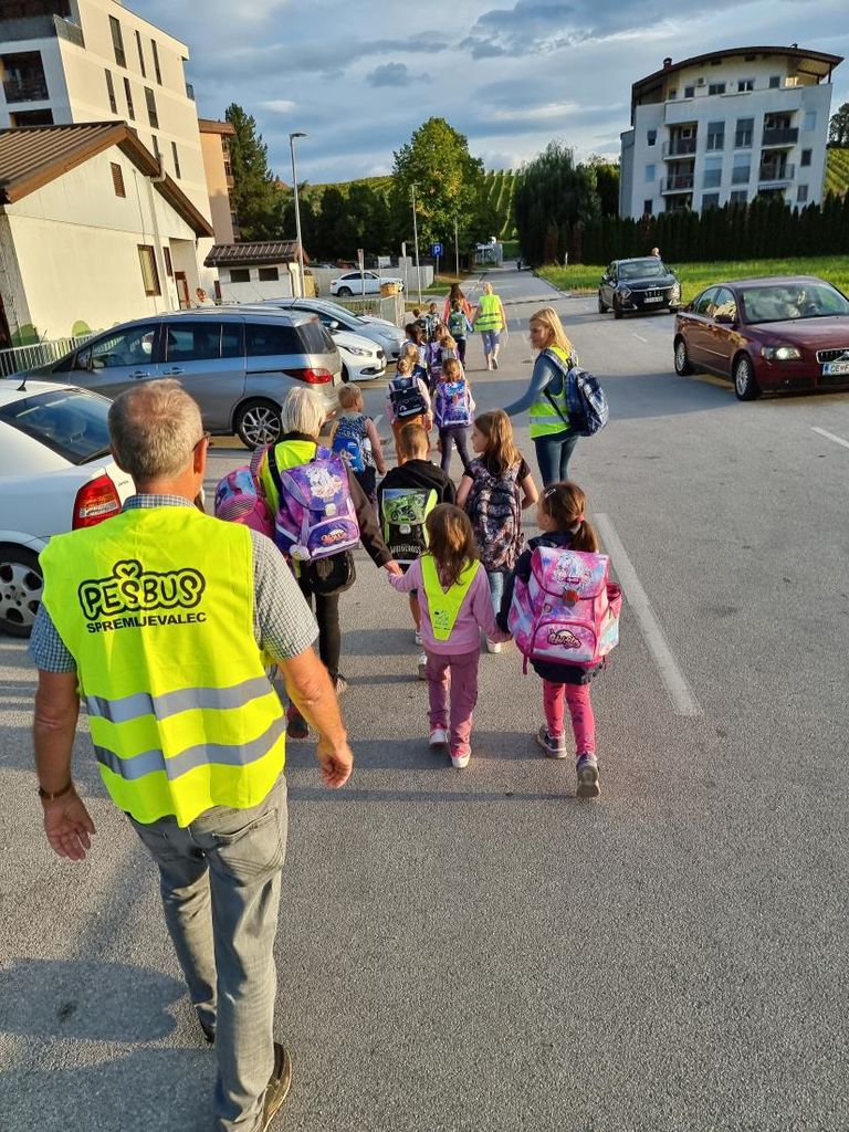Pešbus je način organizirane in spremljanje hoje v šolo za najmlajše šolarje, tudi za prvošolce. Otroci se na hojo v šolo s Pešbusom predhodno prijavijo in skupaj s starši izberejo postajo Pešbusa, na kateri se bodo pridružili skupini. Zjutraj se potem otroci ob točno določeni uri zberejo na izbrani postaji in nato skupaj s spremljevalci hodijo po premišljeno začrtani in označeni poti do šole. Vsak Pešbus spremljajo odrasli. Otroci ob začetku izvajanja aktivnosti prejmejo vozovnice za Pešbus, v katere zbirajo štampiljke za vsak dan hoje in nalepke za vsak teden hoje.