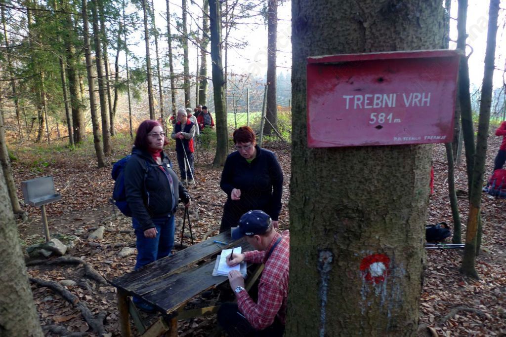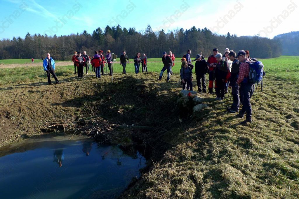 Na prelepo soboto, ko jih je sonce že zjutraj pozdravljalo izza megle, ki se je kmalu razbila, so pot začeli v Trebnjem, kjer sta jih pričakala predsednik njihovega društva Roman in vodnik Lojze, nato pa zares začeli s pohodom pri Mirni peči in nadaljevali pot ob reki Temenici, občudovali požiralnike, nato dobra dva kilometra fosilne struge po razgibanem kraškem površju. Slepa dolina se konča pod gričem Sveto Ano, na tem griču stoji tudi cerkvica s tem imenom, ki so si jo tudi ogledali – seveda od zunaj in se nastavili sončnim žarkom. Tok reke Temenice se umiri na dnu globoko vrezane rečne doline. Na terasi nad dolino je vas Vrhpeč. Povzpeli so se na 581 m visok Vrhtrebnje, od tam pa se spustili do planinskega doma, kjer jih je pričakal prijazen »legenda PD » Rudi in jih postregel z vročim čajem in nekaj konkretnega, ki pa se je po skoraj peturni hoji zelo prilegel. Čakal jih je še strm spust do Trebnjega, kjer jih je čakal avtobus. K prijetnemu vzdušju na avtobusu so še pomagale sladke dobrote Anice in pa Tomaževe žene Petre, ki vedno poskrbi za izredne sladke dobrote, za kar ji iskrena hvala.