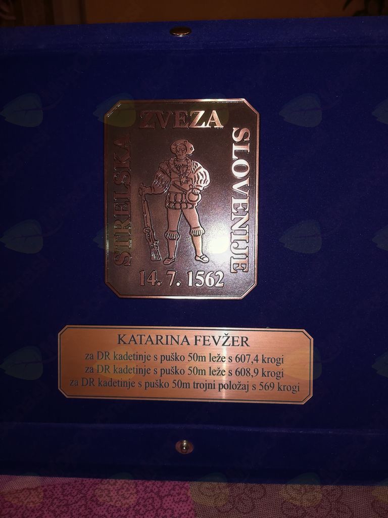 Strelska zveza Slovenije je 13. 12. 2017 v ambientu Gostilne Soklič pri Dobu na že 37. razglasitvi najboljših strelcev v letu 2017 podelila priznanja za športne dosežke, priznanja za organizacijsko delo in seveda proglasila najboljše strelke in strelce po kategorijah. Tudi naša članica KATARINA FEVŽER je dobila dva priznanja :