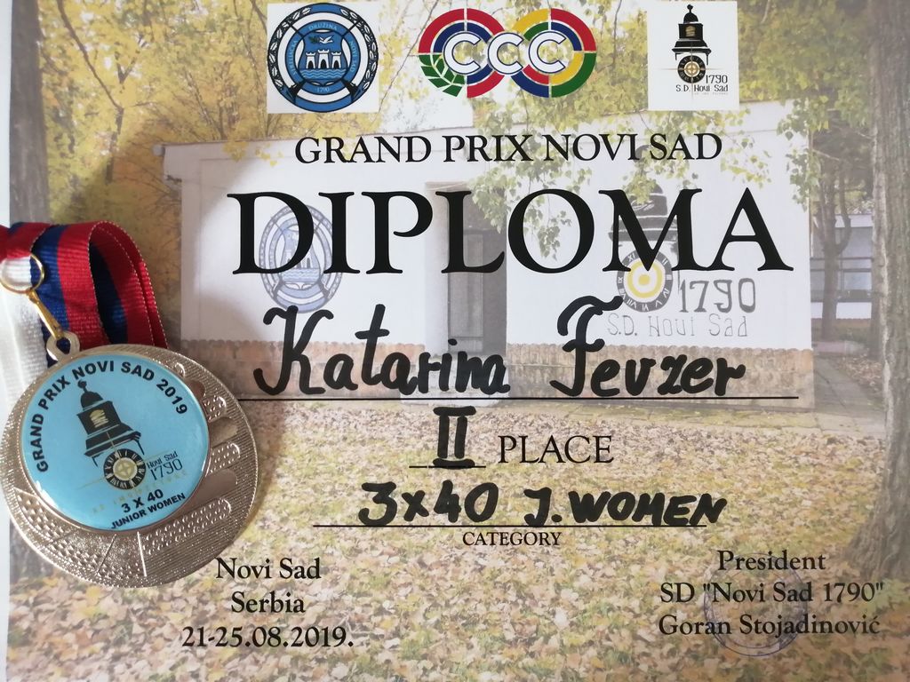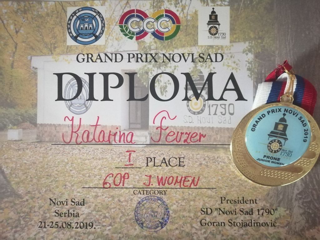 V času med 21.8. in 25.8.2019 je v Srbiji - Novi Sad potekalo strelsko tekmovanje z zračnim in malokalibrskim orožjem Grand Prix Novi Sad 2019. Na tem tekmovanju je barve Slovenije z reprezentanco Slovenije zastopala tudi članica strelskega društva Slovenske Konjice Katarina Fevžer. Na tekmi z malokalibrskim orožjem je na 50m leže - 60 strelov znova dokazala da je v kategoriji mladink v samem vrhu saj je osvojila zlato medaljo. Naslednji dan je znova osvojila srebrno medaljo na tekmi 3 x 40 strelov - kraljeva disciplina. Fevžerjeva potuje 12.9.2019 v Italijo v Bologno, kjer bo potekalo Evropsko prvenstvo.