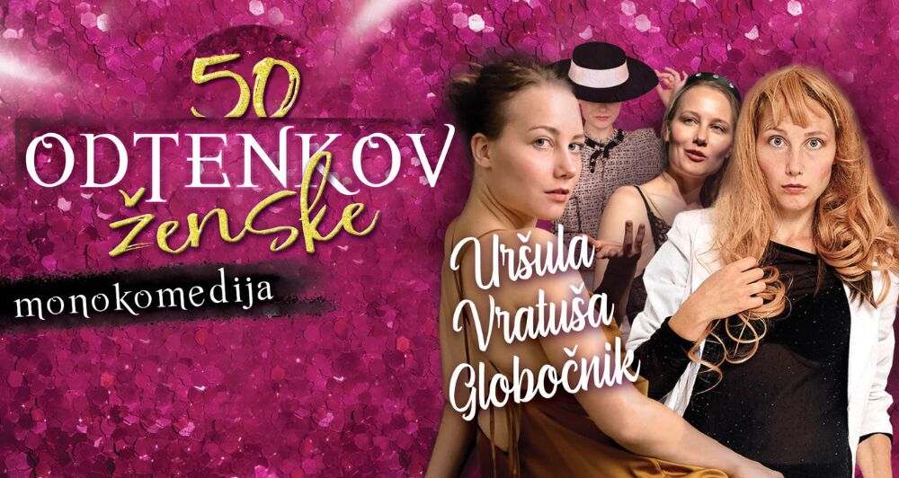 Igralka Uršula Vratuša Globočnik nas bo v monokomediji 50 odtenkov ženske popeljala skozizgodovino žensk – od Eve iz Raja, Kleopatre, Marije Terezije do Marilyn Monroe, Melanije Trump, Urške Klakočar Zupančič in še mnogo drugih zgodovinskih ter sodobnih ženskih likov.