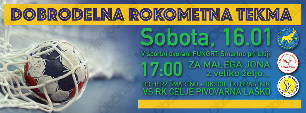 V sodelovanju z organizatorji bomo v soboto 16.01.2016 ob 17.00 uri v Dvorani Pungrt v Šmartnem pri Litiji združili dobrodelnost z rokometom.