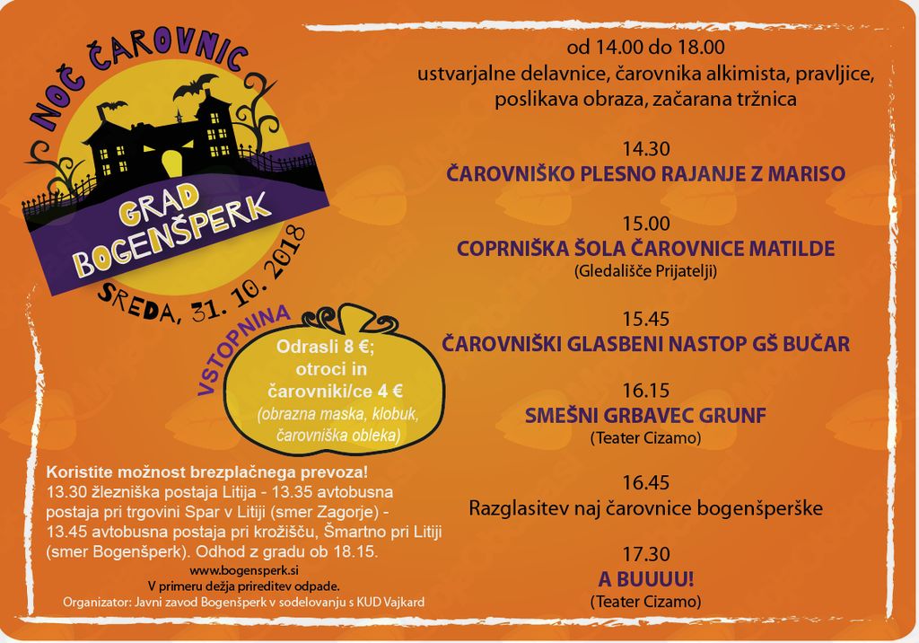 Zaradi slabih vremenskih razmer bomo program Noč čarovnic izvedli s spremenjenim programom. Vabimo vas, da se 31. 10. 2018, od 14. – 18. ure, udeležite skrajšanega programa: