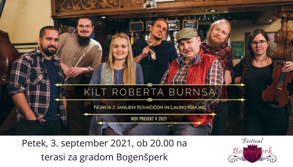 Skupina Noreia najavlja nov vznemirljiv glasbeni projekt Kilt Roberta Burnsa z gostoma: Janijem Kovačičem in Lauro Krajnc. Skupaj so pripravili vesel koncert škotskih ljudskih in ponarodelih napevov, ki jih je zapisal najznamenitejši škotski pesnik Robert Burns (1759–1796), v slovenščino pa sta jih prevedla Janez Menart in Jani Kovačič. Pesmi še danes tvorijo železni repertoar Škotov, tako na koncertnih odrih kot v krčmah.