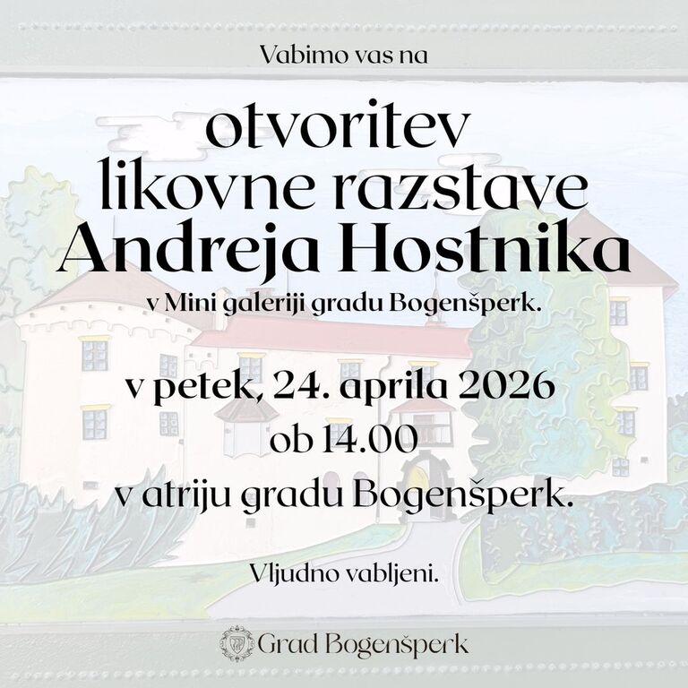 Vabimo vas na otvoritev razstave likovnih del Andreja Hostnika v Mini galeriji gradu Bogenšperk,