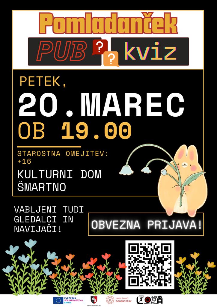 Pridruži se nam na zabavnem večeru znanja, smeha in prijateljskega tekmovanja! Izzivamo vas, da se preizkusite v znanju, povezanim s pomladjo!