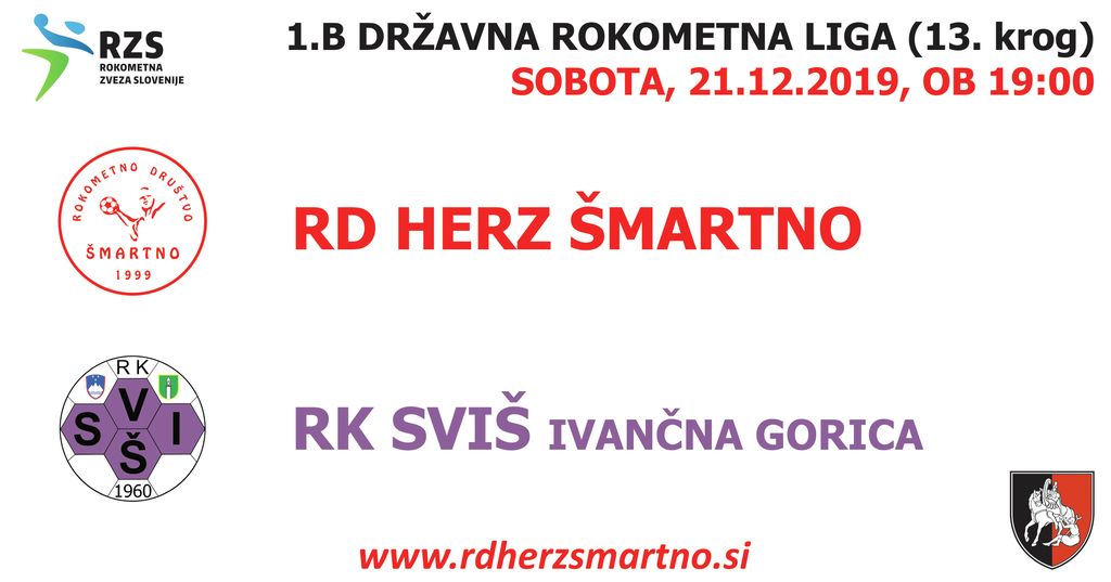 V 13. krogu se bosta pomerila RD Herz Šmartno in RK SVIŠ Ivančna Gorica.