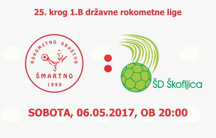 V 25. krogu 1.B državne rokometne lige se bosta pomerila domači RD Herz Šmartno in ŠD Školjica Pekarna Pečjak. Tekma bo v soboto, dne 06.05.2017, ob 20:00, v Dvorani Pungrt v Šmartnem.