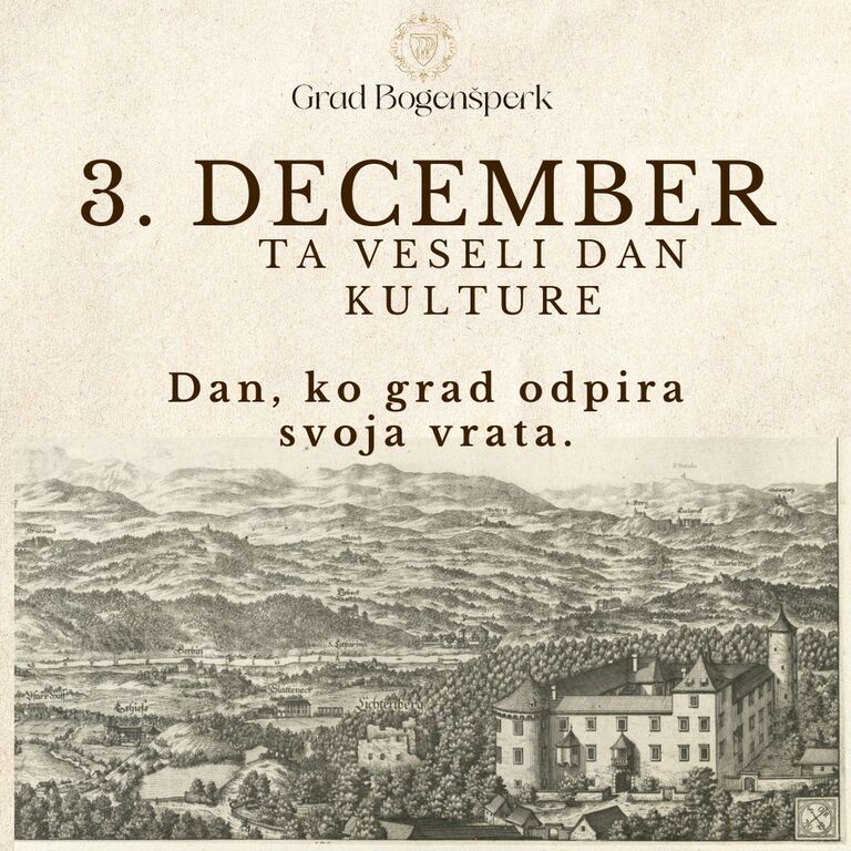 V sredo, 3. decembra 2025, na dan obletnice rojstva pesnika Franceta Prešerna, ki se je rodil 3. decembra 1800, vas vabimo na grad Bogenšperk, ki odpira svoja vrata brez vstopnine.