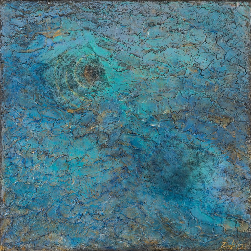 "Slikarka čuti, gleda in premišlja sodobni svet. Slika svet, v katerega smo vstopili po epidemiji, svet bolezni, vojne, slabih odnosov, slika človeka, ki zaradi hitrosti življenja in dela razpada na različne vloge in različne koščke. Za to razkosanost človeške biti ji na nekaterih slikah služi tehnika kolaža. Človek, to bitje ljubezni, prijateljstva, sanjarjenj, hrepenenj, pa tudi maščevalnosti, pohlepa, sovraštva, ki je z enim očesom zazrt v vesolje in hlepi po novih planetih, z drugim pa s strahovi in skepso gleda na dogajanje okrog sebe, je namreč po epidemiji stopil v sivino novega časa."