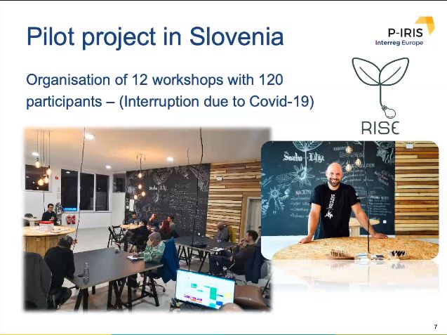 Ena od tem, ki je bila v projektu P-IRIS zelo pomembna, so co-working prostori. Temu so se posvečali partnerji v kar treh partnerskih regijah, tudi v Sloveniji. Danijel Bertović (PINS, Hrvaška), je predstavil glavna odkritja o podeželskih co-working prostorih s Hrvaške, Finske in Slovenije. K predstavitvi je s svojimi izkušnjami prispeval tudi Razvojni center Srca Slovenije, kjer smo združil moči, znanje in kompetence ter z lokalno iniciativo in občinama Šmartno pri Litiji in Litija odprli nove co-working prostore RISE. Na mednarodni razpis Interreg Europe smo uspešno prijavil pilotne aktivnosti v okviru katerih so bile v Podjetniškem RISE Šmartno Litija uporabnikom na voljo različne podjetniške vsebine, možnosti za izobraževanje, sodelovanja z različnimi strokovnjaki ter priložnosti dela s sodobno opremo. Glavna ugotovitev o podeželskih co-working prostorih je, da se razlikujejo od mestnih. Podeželski prostori sodelovanja se v glavnem uporabljajo za mreženje, druženje in izobraževanje podjetnikov, manj pa za tradicionalna dela na daljavo, da bi se izognili poti na delo. Podeželski co-working prostori se pogosto uporabljajo tudi kot večnamenski prostori v kombinaciji z drugimi dejavnostmi, kot so kavarna, spletna tržnica, pop-up trgovina ... medtem ko se urbani co-working prostori uporabljajo predvsem kot pisarniški prostori.