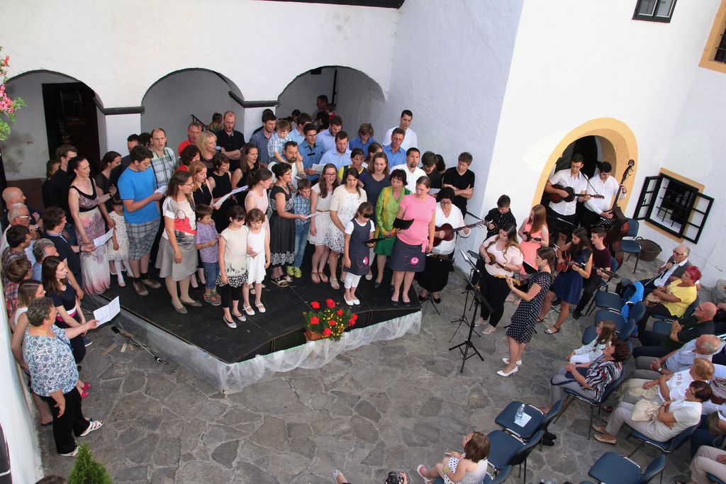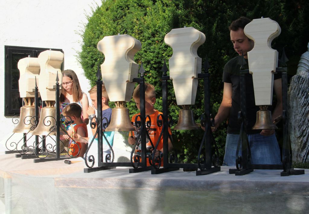 V pozdrav gostom, obiskovalcem festivala Družina poje, so Šmarski pritrkovalci iz zvonov izvabljali čutne melodije pred biserom osrednje Slovenije na gradu Bogenšperk.