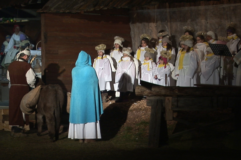 Zgodba se je pričela z Marijo, ki jo je obiskal angel in ji povedal, da bo rodila Božjega Sina. Ko sta se Jožef in Marija odpravila na pot, ju nihče ni hotel sprejeti k sebi. Tako sta prispela do revnega hlevčka, kjer se jima je rodil Jezus. Zgodba se je končala z obiskom angelčkov in svetih treh kraljev.