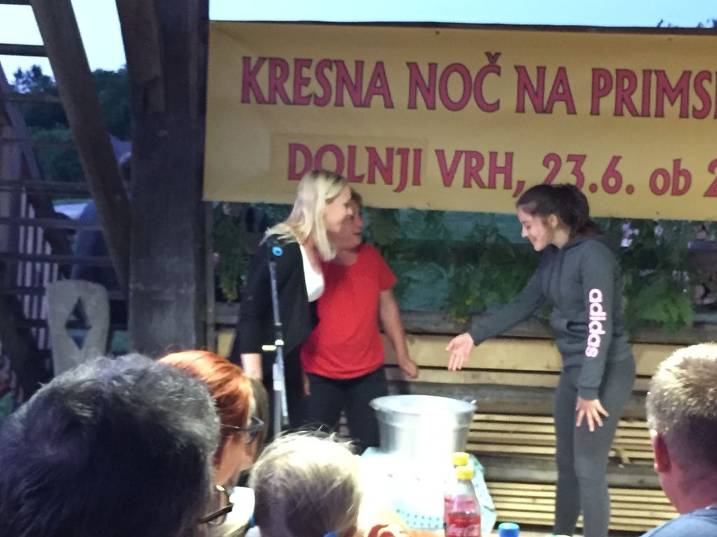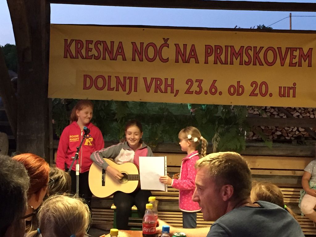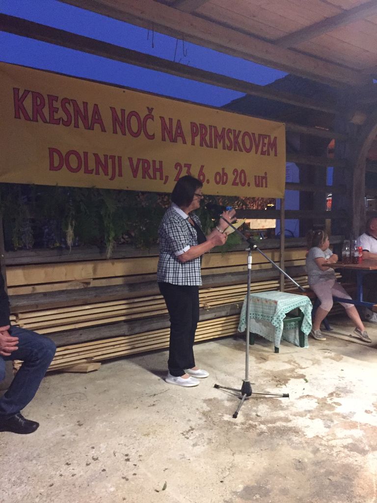 Etnološko društvo Jurija Humarja je letos že petič organiziralo Kresno noč na Dolnjem Vrhu. Obudili smo spomine na običaj kresne noči ob prazniku sv. Janeza Krstnika. Kresna noč ima svojo moč. Letošnja nit prireditve je bila Moč in ljubezen. V kulturnem programu so domače igralke in igralci uprizorili nekaj šeg in navad iz tistih časov. Z navdušenjem smo prisluhnili tudi najmlajšim, ki so se predstavili z igranjem na svoje instrumente. Župnik gospod Jože Hauptman je blagoslovil kres, za varnost so poskrbeli primskovški gasilci. Veselo in prijetno druženje smo nadaljevali ob jedači in pijači. Organizatorji smo veseli, da je prireditev lepo uspela. Ob zaključku smo se spomnili tudi na našo domovino in vsem zaželeli veselo praznovanje dneva državnosti s povabilom na osrednjo občinsko proslavo v Šmartno in na večer ob ognju k primskovškim gasilcem. Dogodek prikazujejo foto utrinki.