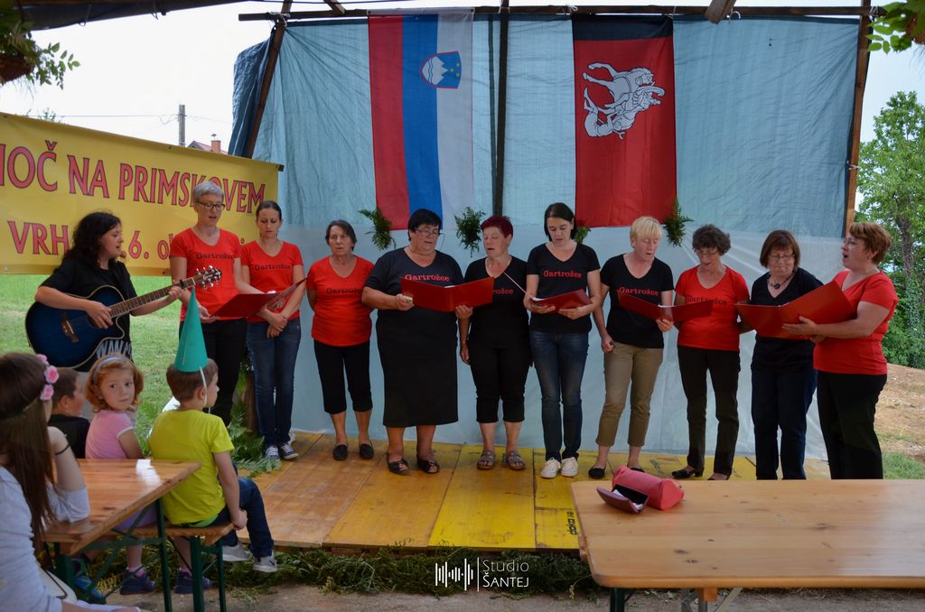 Po maši v cerkvi Janeza Krstnika na Dolnjem Vrhu in po zapeti himni v počastitev dneva državnosti so uvod v praznik izvedli pevci MOPZ Zagriški fantje. Kulturni program so obogatile tudi domače pevke, Gartrožce.