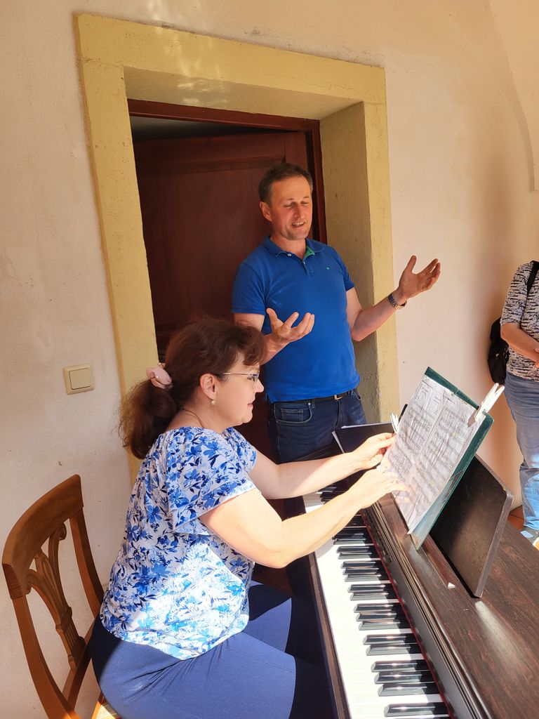 Ogledali smo si kapelo sv. Janeza Nepomuka, ki stoji ob gradu, s poslikavami Franca Jelovška. Za zaključek obiska na gradu Tuštanj nas je g. Peter Pirnat presenetil in nam čudovito zapel ljubezensko arijo Vsi so prihajali (je tudi operni pevec), na klavirju ga je spremljala njegova žena.