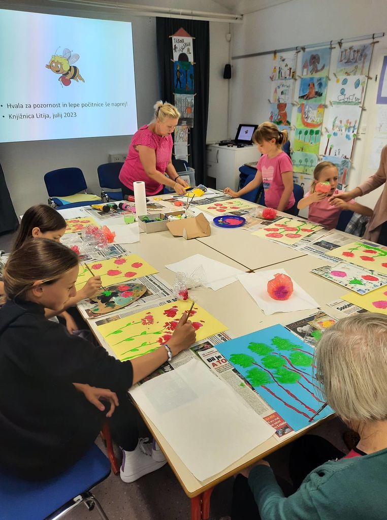 Naslednji dan, ko so se v Sloveniji začele grozljive poplave, pa smo bili ob opazovanju reke Save predvsem hvaležni. Hvaležni, da smo na varnem, hvaležni, da smo skupaj. Kljub napetim razmeram nas je gostoljubno sprejela gospa Aleksandra Mavretič iz Knjižnice Litija in nam pripravila poučno, zabavno in ustvarjalno dopoldne. Spoznavali smo dragocenost čebel ter ustvarili krasne travnike, polne rož in čebelic. Sočustvovali smo z vsemi, ki so jih prizadele poplave, v mislih pošiljali dobre želje in stiskali pesti, da bi se vreme čimprej umirilo. Dneva sta bila izredno dragocena in skupni trenutki bodo še dolgo odmevali v spominih.