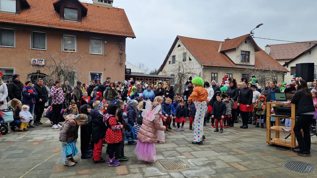 Na Staretovem trgu so zaplesali klovni, čarovnice, čebelice, princeske, miške, zmajčki, vile, vitezi in še mnogo drugih pustnih likov. "Miške" in "Palčki" iz Vrtca Ciciban so nam zapeli in zaplesali, zabaval nas je klovn Batko, za zaključek pa so nas razveselili še kurenti.