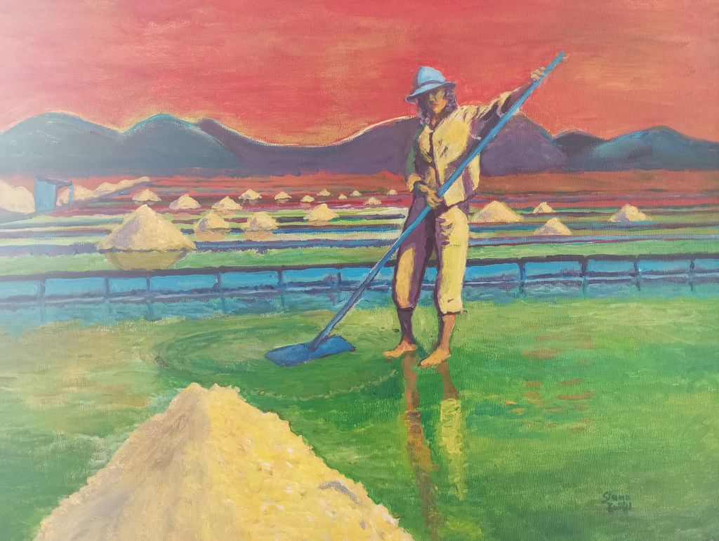 Večji del razstave v Sečovljah je slikarski, pri slikah prevladuje akril na platnu, nekaj je tudi akvarelov. Sabina se preizkuša tudi v grafiki in kiparstvu. Motivno je razstava povezana z okoljem, kjer gostuje, to je s solinami. Likovne upodobitve se nanašajo na solinarsko krajino, solinarje in sol ter rastlinski in živalski svet tega nenavadnega habitata. Del motivike je širši, na slikah so tudi upodobitve mediteranske pokrajine in morja ter ženske figure. Na razstavi je več kot 20 del, za katera lahko rečemo, da gredo, začinjena s soljo, v vizualno slast.