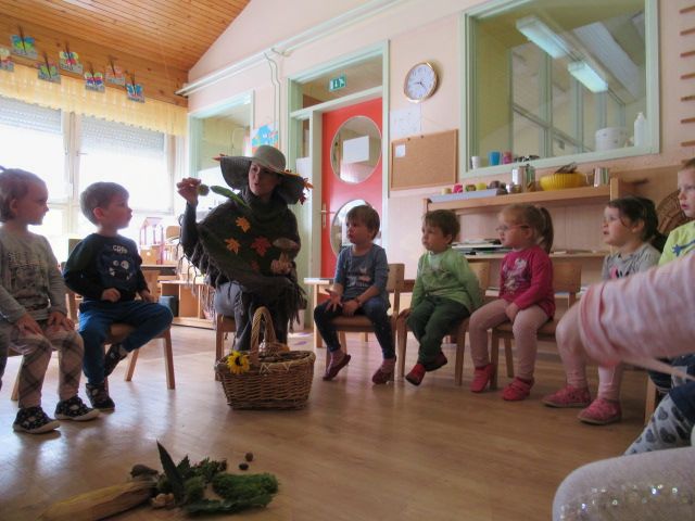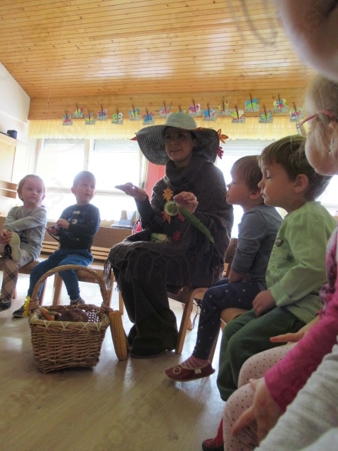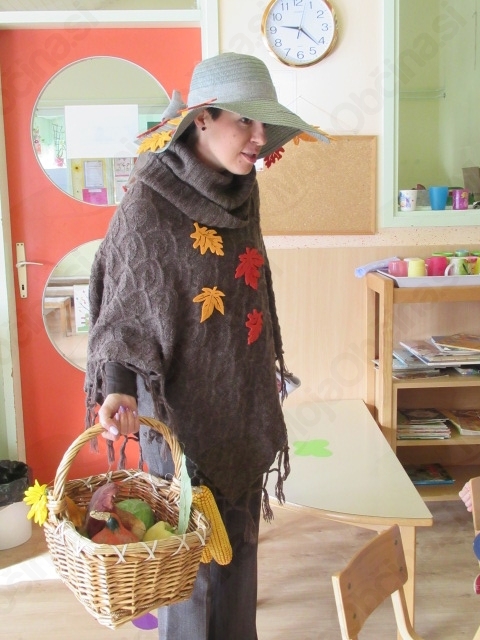 V vrtec Ciciban je prišla Teta Jesen. V pisane barve odeta, s polno košaro jesenskih pridelkov, ki jih v tem času lahko naberemo v gozdu, na polju in vrtu. Otroci so jo najprej opazovali skozi okno, nato pa so jo povabili v svoje igralnice, kjer so ji povedali, kaj vse vedo o njej, ji zapeli in deklamirali pesmice o jeseni in pokazali koliko različnih pridelkov in plodov so prinesli. Na njen prihod so se v skupinah preko različnih dejavnosti  pripravljali cel teden. Nekateri so se podali v naravo, kjer so opazovali jesenske spremembe, drugi so obiskali knjižnico, kjer so si izposodili pravljice o jeseni. Vse skupine so pripravile tudi razstave jesenskih pridelkov, česar se je Teta Jesen zelo razveselila. V petek, na prvi jesenski dan, je po vrtcu dišalo po pečenem jabolčnem zavitku, ki so ga skupaj z vzgojiteljicami pripravili otroci iz skupine Pikapolonic. Ob slovesu nam je še zaupala, da ko bo zunaj mraz in bodo zapadle prve snežinke, lahko pričakujemo nov obisk. Le kdo bo tokrat prišel v naš vrtec? Komaj čakamo, da izvemo…