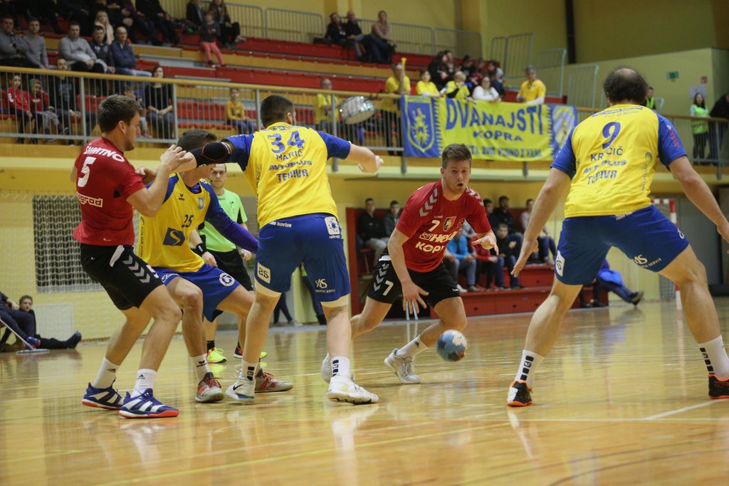 Favoriti iz Kopra so tekmo začeli zelo podjetno in povedli 2:7. Domača ekipa se je nato malo zbrala, ter znižala na 7:10. Gostje so nato strnili vrste v obrambi, kar je prisililo domačo ekipo k napakam, razlika se je pričela hitro višati, ter na polčasu znašala že visokih devet zadetkov. V drugem polčasu so gostje kontrolirali rezultat, domača ekipa ni imela moči, da bi se približala prvoligašem. Proti koncu tekme sta oba trenerja ponudila priložnost vsem igralcem s klopi. Pri domači ekipi je za člane debitiral 17 letni Domen Jamnik.