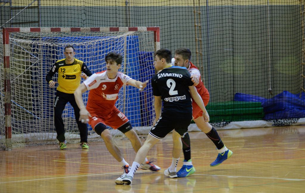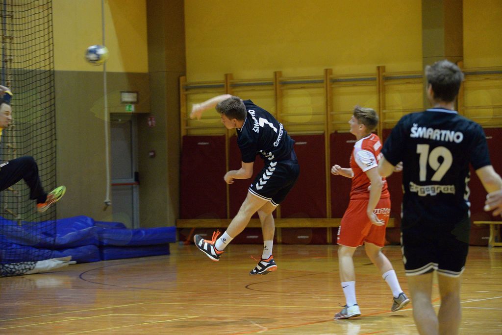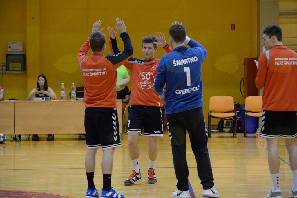 Šmarčani so nastopili brez poškodovanega Jake Avsca, za katerega je sezona verjetno že zaključena. V prvem polčasu so se prvi odlepili gostje, ki so povedli 5:10. Domača ekipa se je zbrala ter izenačila na 11:11, ter nato povedla 16:14. Ko se je zdelo, da bo polčas pripadel domačim, pa so gostje izkoristili napake ter do konca polčasa izenačili na 16:16. V prvem polčasu sta bila razpoložena oba vratarja, pri gostih Klemen Nunčič, pri domačih pa Maks Sadar. Na začetku drugega polčasa izenačena igra, potem pa so gostje dodali nekaj več ter ponovno občutneje povedli pri 20:23. Domači so bili v obrambi premehki, gostje so brez težav zadevali iz različnih položajev. Zaradi solidne igre v napadu se je domača ekipa približala na 30:32, ampak za preobrat je zmanjkalo moči in tudi nekaj znanja. Pri gostih je z 10 zadetki izstopal Robert Sankovič, pri domačih je Tilen Strmljan dosegel 9 zadetkov.