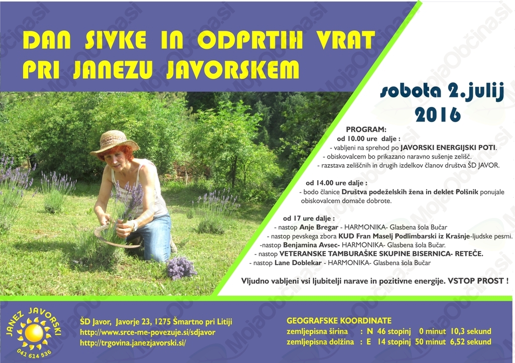 Dan sivke in odprtih vrat pri Janezu Javorskemu je tradicionalna turistična prireditev s kulturnim programom, ki se dogaja ob Javorki energijski, učni poti, ki je edinstvena v Sloveniji po energijskih točkah, Keltskem horoskopu, točkah za meditacijo, različnih drevesnih vrstah, Sibirski cedri, Živi vodi, več kot stotimi zelišči, ki jih člani Društva Javor uporabljajo v ročni izdelavi izdelkov, ki nam lajšajo tegobe. Društvo ima pridobljenih več certifikatov kakovosti in sonaravnega sobivanja v naravi z naravo.