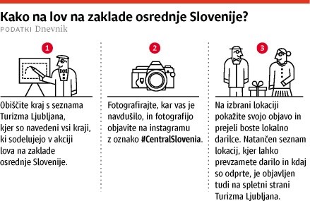 S promocijsko akcijo Lov na zaklade Osrednje Slovenije želi Turizem Ljubljana skupaj z občinami osrednje Slovenije predstaviti nabor idej za izlete, obenem pa čim bolj razširiti besedo o lepotah in doživetjih - zato so se za promocijo odločili vključiti priljubljeno platformo Instagram, uporabnike hashtaga #CentralSlovenia pa "nagraditi" z lokalnim darilcem.