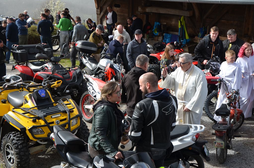 V krogu znotraj tabora in pod primskovško lipo je bilo prijetno in živahno. Letos se je na Primskovo pripeljalo preko 100 motoristov s svojimi lepimi jeklenimi konjički. Blagoslov jim je podelil župnik g. Vinko Malovrh. Zaželel jim je srečno, varno in strpno vožnjo v novi motoristični sezoni. Z blagoslovom se je posvetil prav vsakemu motorju in motoristu.