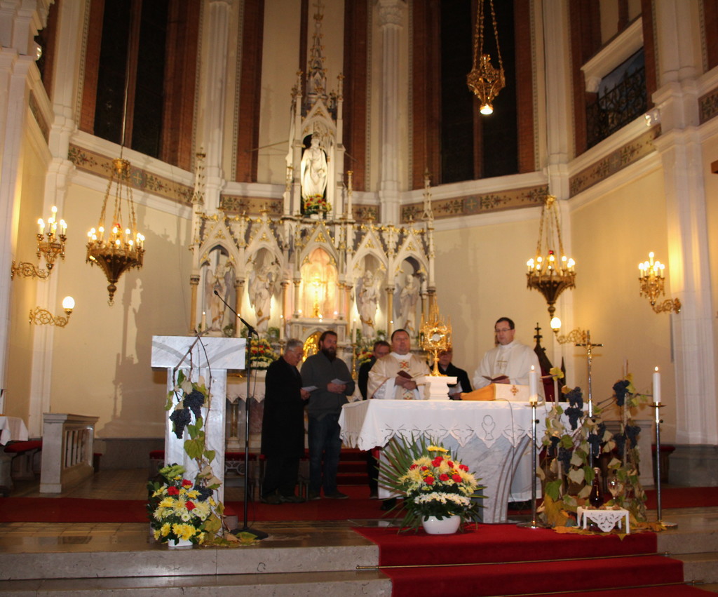 Deževen petkov praznični dan, 11. novembra, smo zvečer zaključili s celodnevnim češčenjem v farni cerkvi. Slovesno bogoslužje z petimi Lavretanskimi litanijami in sv. mašo, je vodil župnik iz Šentvida pri Stični g. Izidor Grošelj, ob somaševanju domačega župnika g. Janeza Kvaternika. V mašnem nagovoru je g. Izidor obudil znano zgodbo godovnjaka, kako je Martin še kot vojak na pol razdelil svoj plašč, po katerem ga je poprosil berač. S tem dejanjem se je tudi tokrat izpolnilo kar je pisano; »…Kar ste storili komu izmed mojih bratov, ste meni storili!« Svet nas na glas vedno bolj vabi »v življenje«, ampak, Kristus nam govori v tišini, mi pa smo lačni! Vendar, ali smo lačni življenja sveta, ali smo lačni Življenja, s katerim je človek dovzeten za tisto kar je Sveto?