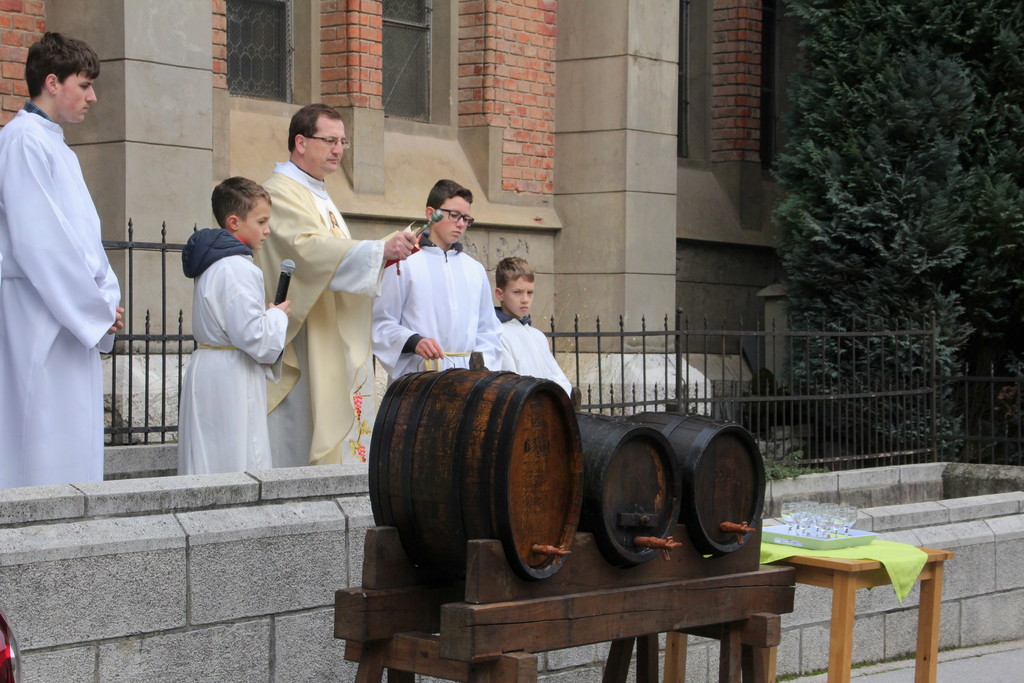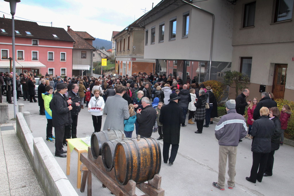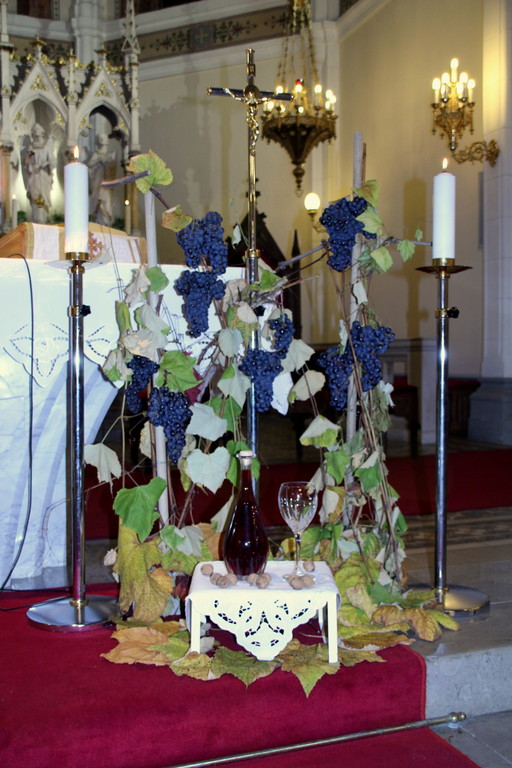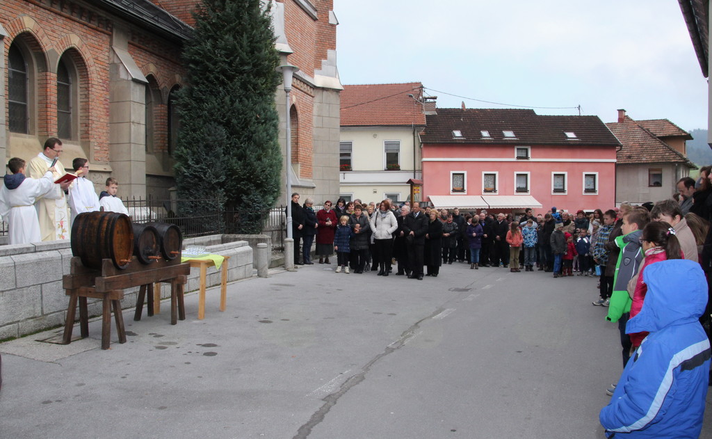Po koncu slovesnosti, smo se zbrali še pred mežnarijo, kjer je blagoslovil novo mlado vino, v sodelovanju Vinogradniškega Društva Štuc. Njihov predsednik g. Jože Zadražnik nam je spregovoril o letini, ter poudaril, da delo vinogradnika danes ni končano; res je poplačan ves vložen trud, na sami kvaliteti vina pa mora še vedno delovati! S priložnostno pesmijo so sodelovali tudi Fantje od fare. K skupnem druženju je g. Jože povabil skupaj z Šmarskim županom g. Rajkom Meserkom na pokušino mladega vina, kuhanega vina, predvsem pa tudi na dobrote izpod pridnih rok šmarskih gospodinj.