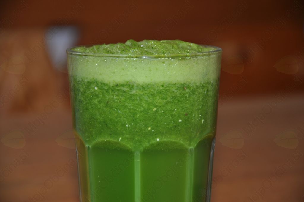 1 banano, 2 jabolka, sok ene limone, ½ žličke himalajske soli, 1 jedilna žlica lanenega olja (lahko katerokoli hladno stiskano), 2 noževi konici kajenskega popra in 4 -6 tabletk alge spiruline (lahko tudi klorelo ali alfa algo) damo v mešalec. Prilijemo 2 dl vode in zmeljemo. Ta napitek si lahko pripravimo zjutraj in ga eno skodelico spijemo za zajtrk ostalo pa odnesem s seboj v službo za malico ali kosilo.