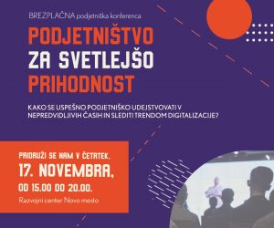 Brezplačna podjetniška konferenca PODJETNIŠTVO ZA SVETLEJŠO PRIHODNOST, ki jo organizira EUROPE DIRECT Novo mesto, je pred vrati. To je odlična priložnost za vsa podjetja v vaši občini, da se nam pridružijo na dogodku, ki bo v četrtek, 17. novembra, s pričetkom ob 15. uri na Razvojnem centru Novo mesto.