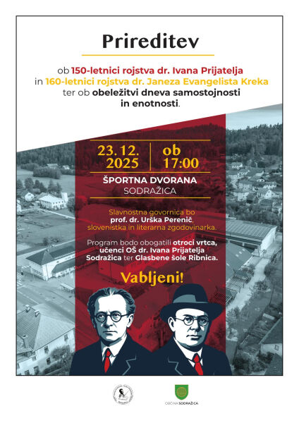 Prireditev ob 150-letnici rojstva dr. Ivana Prijatelja in 160-letnici rojstva dr. Janeza Evangelista Kreka ter ob obeležitvi dneva samostojnosti in enotnosti