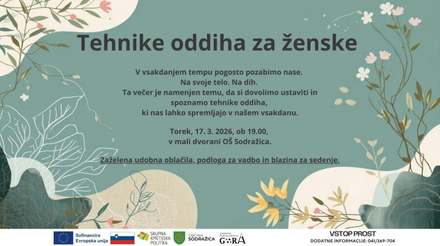 Torek, 17. marec 2026, ob 19.00, mala dvorana OŠ Sodražica