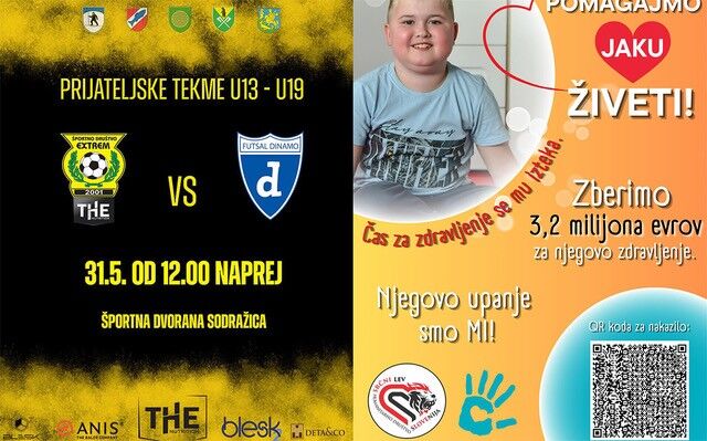 V sklopu prijateljskih tekem med THE Nutrition Extrem in Futsal klub Dinamo bo pred dvorano v Sodražici Extremov jurček, ki bo poskrbel za hrano, pijačo in Extremove navijaške artikle, vsa zbrana sredstva pa gredo za pomoč Jaki!
