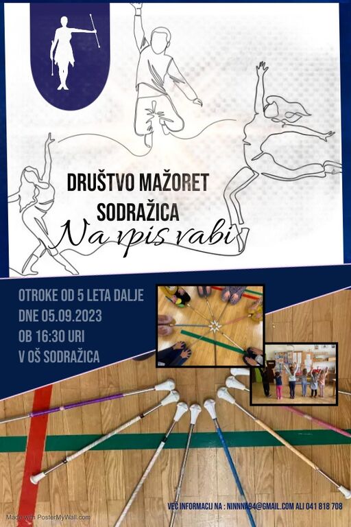 Društvo mažoret Sodražica tudi letos vabi na vpis novih članov in članic od 5 leta dalje. Vabi vse ne glede na starost, ki si želijo učiti tehnike s palico ali jo zgolj izpopolniti. Prvi vpis bo potekal 5. septembra v OŠ Sodražica, ob 16:30 uri, možno pa se bo vpisati na katerem koli treningu v mesecu septembru in oktobru v letošnjem letu. Treningi bodo potekali ob torkih in četrtkih popoldan. Vesel plesni pozdrav in vabljeni!