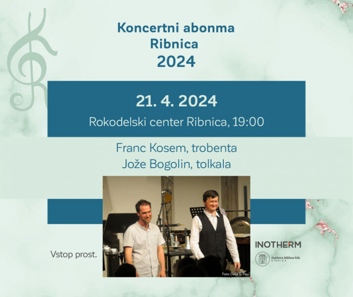Vljudno Vas vabimo na prvi koncert, ki bo v nedeljo, 21. 4. 2024 ob 19. uri, v Rokodelskem centru Ribnica.